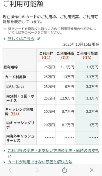| ご利用したカードローン・キャッシングの悪い点 | アプリに反映される「ご利用金額」がギリギリにならないとカードローン分も含まれていないことに最近気がついたので、あらかじめローン返済分も反映されてて欲しいです。 | ||