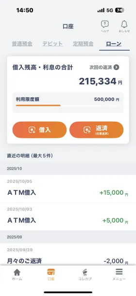 | ご利用したカードローン・キャッシングの良い点 | コンビニATMで借りられるし、返済もコンビニのATMからいつでもできる。アプリからの出金もできるし、カードも送られてくるので、スマホを忘れても出金が可能。 | ||