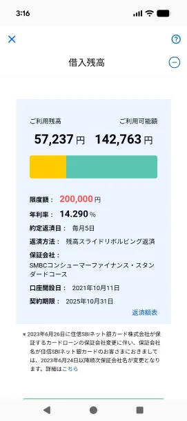このカードローン・キャッシングに決めた理由 | 初めは楽天銀行を利用していましたが、住信SBIは給与振込がある口座だったので、確実に返済できると思ったからです。 | ||