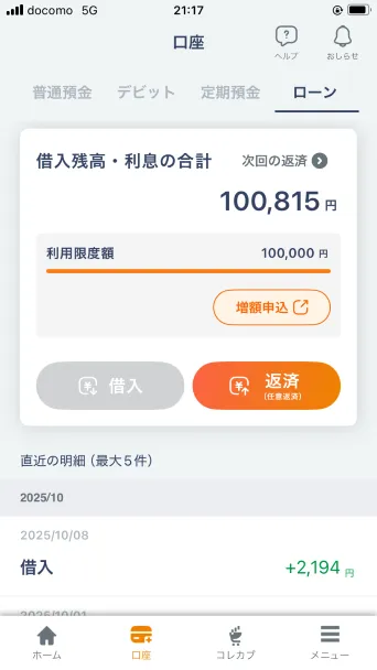 | このカードローン・キャッシングを利用しようとしている方へのアドバイス | 計画性を持って使うことが大切です。利用前に毎月の返済額と完済までの期間を明確にし、必要最小限の金額だけ借りるようにしましょう。また、在籍確認がなくスムーズに進む分、借りすぎには注意し、返済遅延を防ぐために口座残高や返済日を常に確認しておくことをおすすめします。 | ||