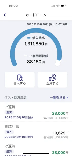 | 借入金額 | 140万円 | 利息 | 年13.0% |