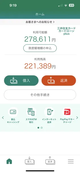| ご利用したカードローン・キャッシングの良い点 | 周りに知られにくく、少額から借りられること。また、返済に関しても借入金額に応じて月の返済額が決まるが、余裕があるときはある程度多く返すことができ、アプリですぐ確認もできるところ。 | ||