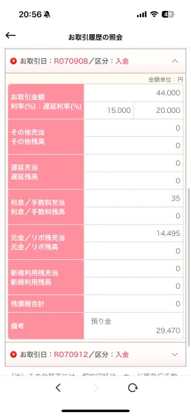 | 申込時のコンタクト | 電話(携帯) | 遅延時のコンタクト | 遅延なく返済 |