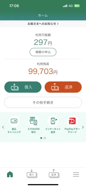 | ご利用したカードローン・キャッシングの良い点 | スマホ1つでローソン銀行やセブン銀行で手軽に借入ができるので、金欠時などにすぐにお金を用意できるところです。 | ||