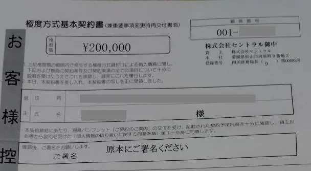 | 申込時のコンタクト | 電子メール、電話(携帯) | 遅延時のコンタクト | 遅延なく返済 |