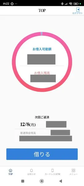 全てWEBで手続きが完了できたので、ハードルが低かったのは良かったと思います。在籍確認の電話もなかったし、電話でオペレーターと話した事もないけど、借入したり返済の時口座引き落とししたり、引き落としの日が近くなった時などにメールで知らせが来るので、それはありがたいです。