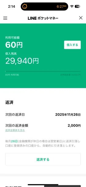 | ご利用したカードローン・キャッシングの悪い点 | LINEポケットマネーということだけあって、他社の業者に比べると借入可能な金額が少ないと思う。また、金利も高い。 | ||