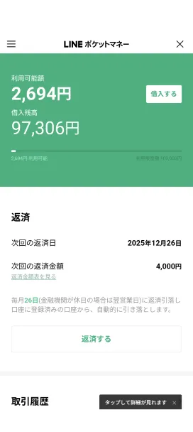 LINEで完結し、返済日などお知らせしてくれるので安心です。