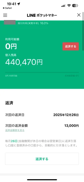 | ご利用したカードローン・キャッシングの良い点 | 返済シミュレーションや引き落とし日時など簡単で見やすく、LINEなので変にアプリを追加しなくていいのもいいなと思いました。 | ||