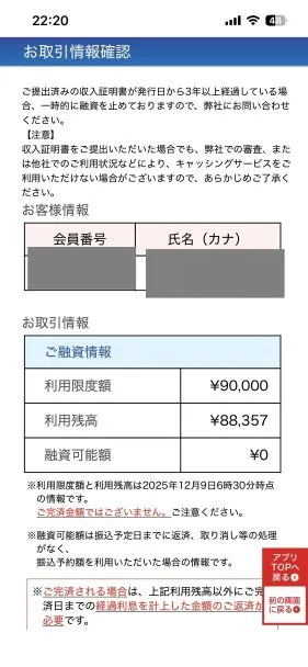 | ご利用したカードローン・キャッシングの良い点 | アプリで完結できるとこがいいと思います。借入、返済どちらもアプリから手続きできますし、24時間受付してくれるのでとても便利だと思います。 | ||