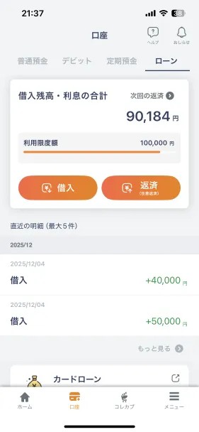| ご利用したカードローン・キャッシングの悪い点 | ローン専用のキャッシュカードを持たないといけないのが不便に感じます。カードレスも選べるなら良かったと思います。 | ||