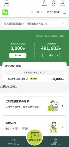 | ご利用したカードローン・キャッシングの良い点 | アプリで借入と返済の管理ができて簡単で便利です。本当にWEBだけで完結しているので、どこかに行く必要もなく、周囲に知られるリスクも低い。 | ||