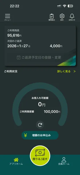 | ご利用したカードローン・キャッシングの良い点 | PayPayで返済ができるところです。銀行振り込みだとなんだか手間を取る気がして面倒でしたがPayPayで返済できるので便利だと思いました | ||
