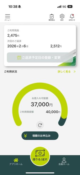 | ご利用したカードローン・キャッシングの良い点 | 借入だけでなく増額までアプリで完結し、手続きも非常にスムーズです。電話対応も親切で、利用中の不安を感じることもありません。全体的な利便性の高さに大変満足しています。 | ||