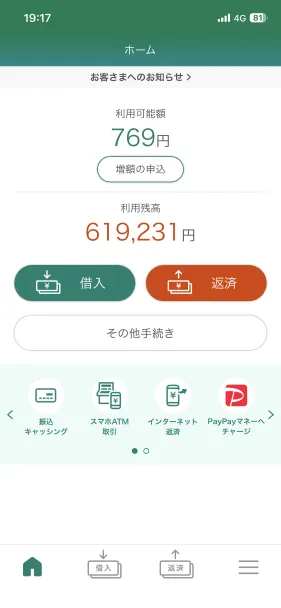 アプリから借入や返済ができて便利