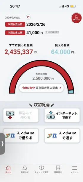 | このカードローン・キャッシングを利用しようとしている方へのアドバイス | カードローンを利用する前にいくつか意識しておいたほうが良い点があると感じました。借入できる金額ではなく「無理なく返済できる金額」を基準にすることが大切だと思います。金利や返済方法を事前にしっかり確認し、毎月の返済額を把握したうえで利用すると安心できると思います。 | ||