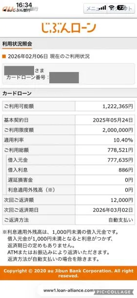 | このカードローン・キャッシングに決めた理由 | 一時的な出費が重なったのと、家族に知られたくない気持ちがあり、かつスマホ料金の引き落とし口座をauじぶん銀行に指定していたため、契約に至りました。 | ||
