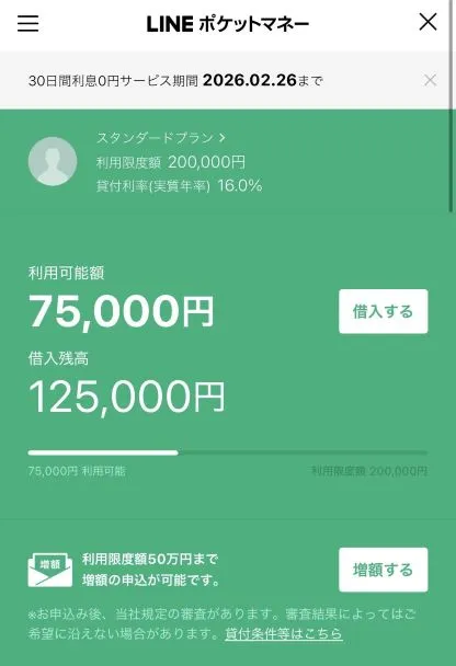 | 借入金額 | 15万円 | 利息 | 年16.0% |