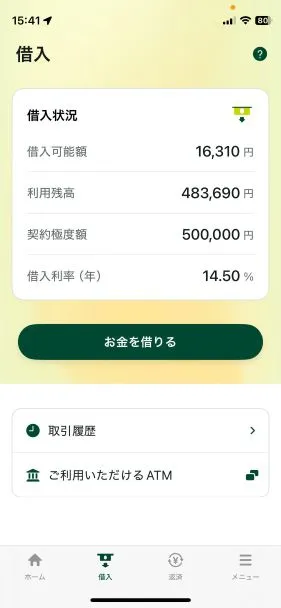 | 借入金額 | 50万円 | 利息 | 年14.5% |