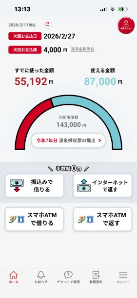 | ご利用したカードローン・キャッシングの悪い点 | 返済時に引き落とされていないことがありました。入金のタイミングによるかもしれませんが、引き落としされる時間が明確になっていると助かります。 | ||