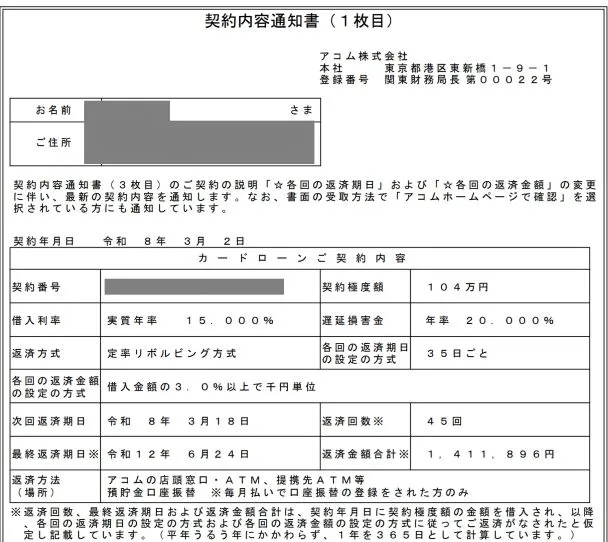 - アコム 店舗・自動契約機で契約し、明細の確認方法をWEBにした場合、返済遅延しない場合は郵送物が発生しません。