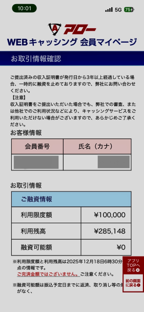 | アローを利用する人へのアドバイス | 決められた期日を守って返済していれば、何も困ることはありません。滞納を一度も起こしたことがないため、もし遅れた場合の状況については分かりかねます。 | ||