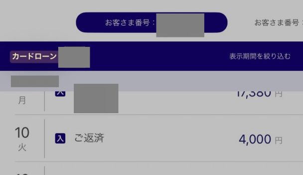 | カードローン回数 | 1回 | 目的 | 生活費 |